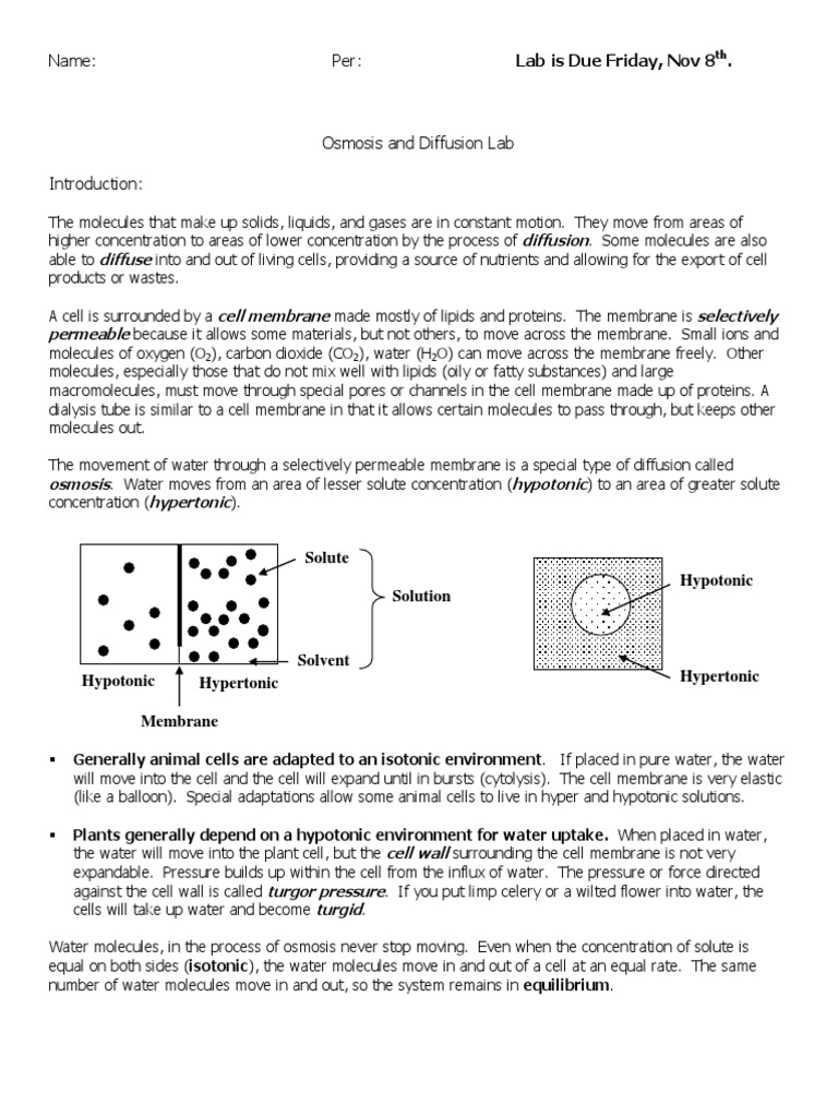 It has tiny pores or diffusion is movement of a substance from an area of high concentration to an area of low concentration. Why are you placing the eggs in vinegar? Using your knowledge of osmosis and diffusion, explain why you think this will occur. Ap biology egg osmosis lab essay 658 words dec 5, 2012 3 pages ap biology august 23, 2012 egg osmosis lab definition of osmosis: Published with reusable license by.